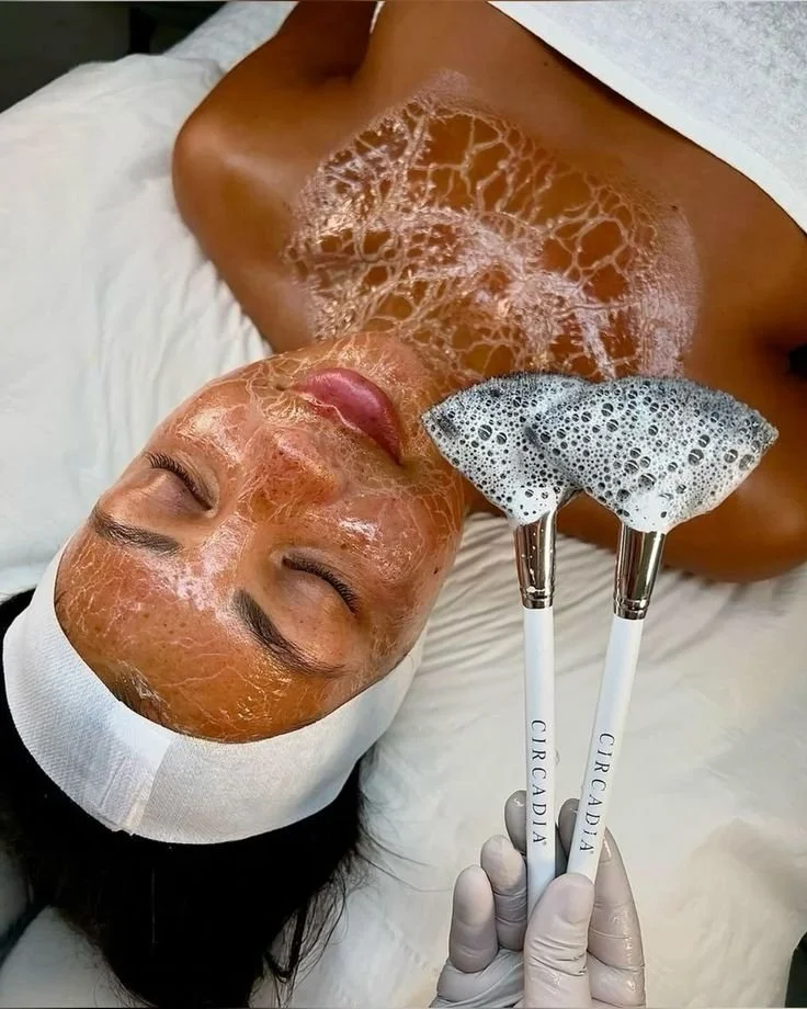 A 90-minute firming and tightening treatment featuring Circadia’s Firming Peptide Mask. This advanced mask combines cutting-edge peptides, antioxidants, and dermal regeneration technology to boost microcirculation, detoxify the skin, and deliver instant lifting, firming, and tightening for a more youthful appearance.